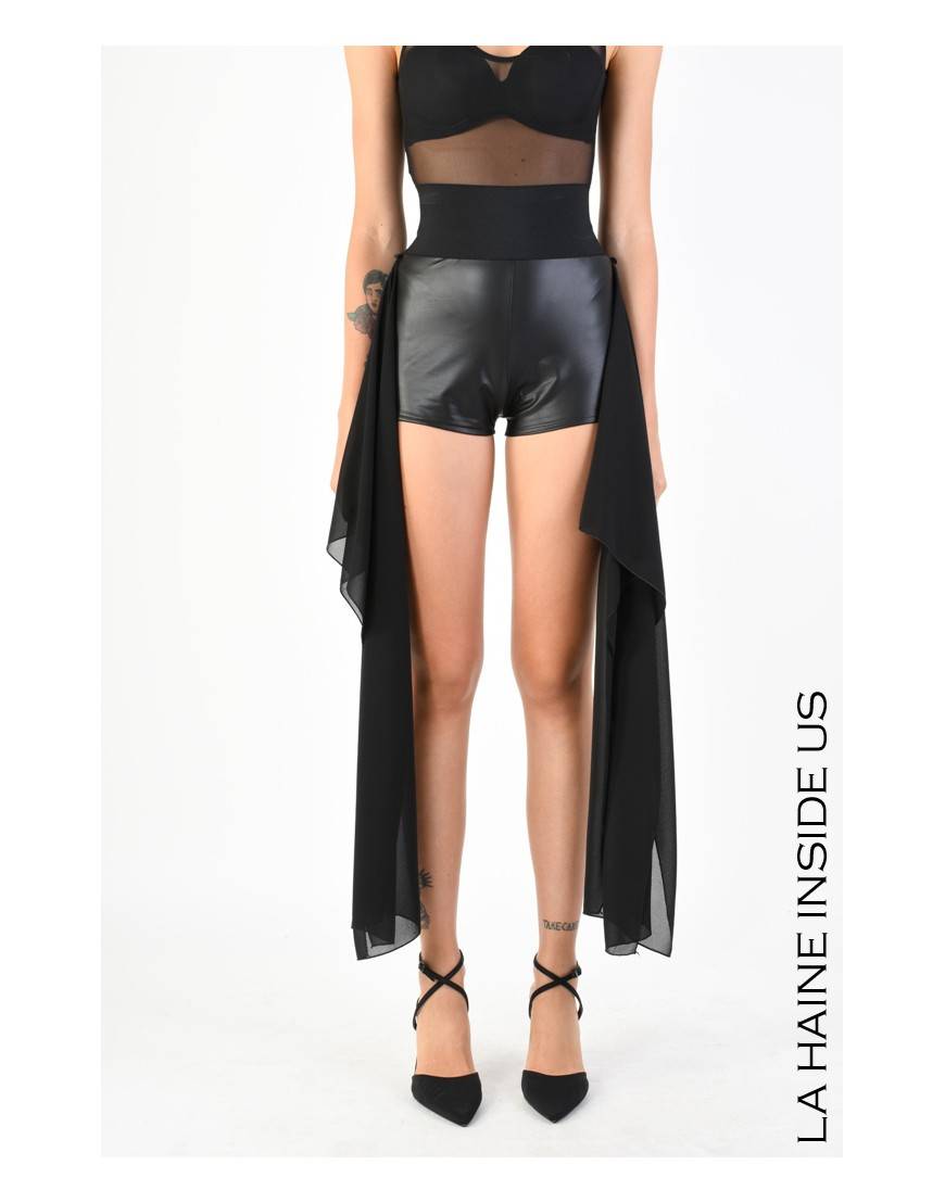 Coulotte in lycra stretch effetto ecopelle - Vita elasticizzata - Pannelli laterali in georgette rimovibili con bottoni