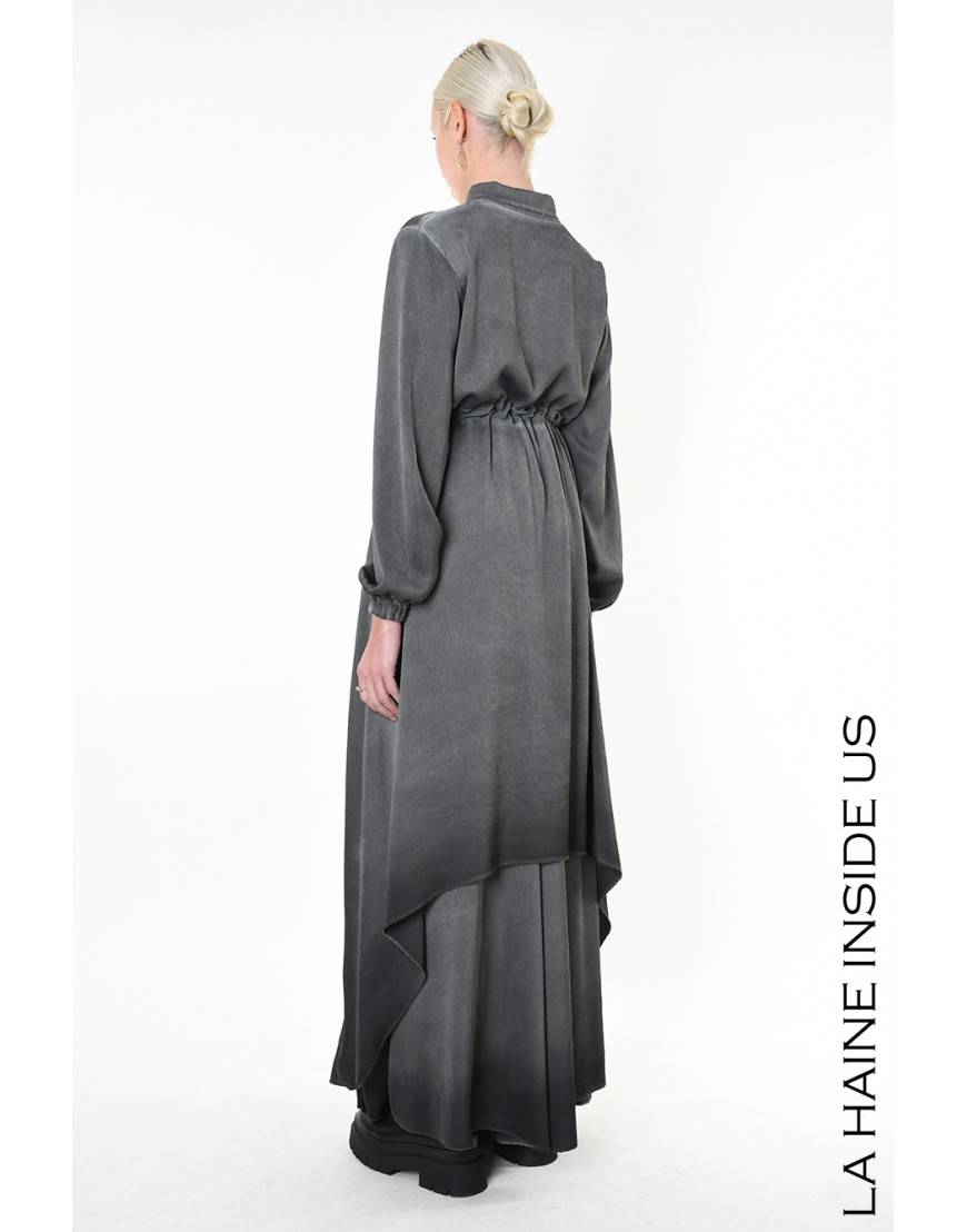 Camicia asimmetrica in raso devorè - Tinto freddo degradè - Chiusura bottoni - Polsi elastici - Coulisse