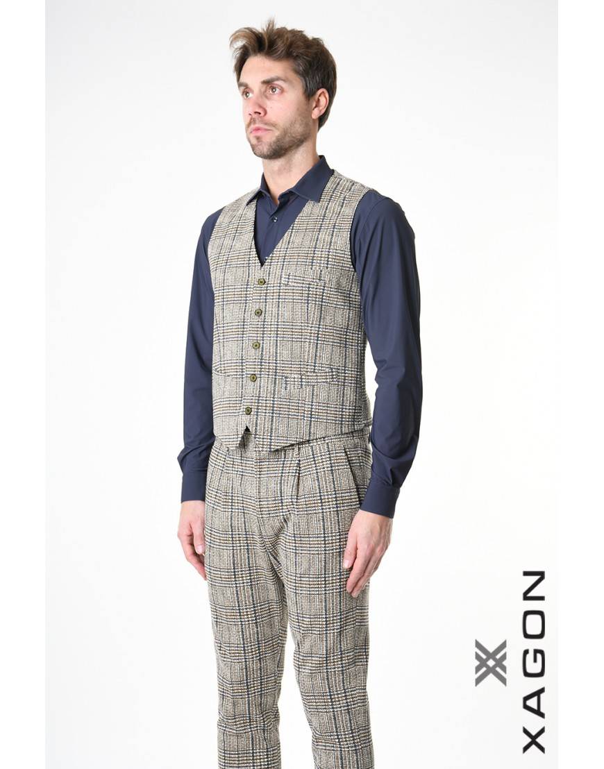 Gilet slim fit stretch - Quadro stampato - Tasche - Chiusura bottoni
