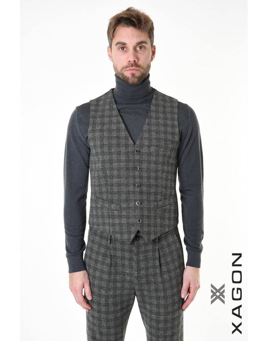 Gilet jersey slim fit stretch - Fantasia quadro - Tasche