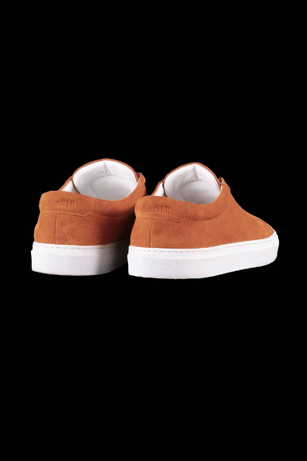 Sneaker ispirata al più tradizionale "tennis style" leggermente imbottita e realizzata in pelle di vitello scamosciata di alta qualità, tinta in botte con anilina. La superficie vellutata ha una luminosità unica e un tocco straordinariamente morbido grazie all'effetto speciale che ricorda la scrittura. Pelle di vitello scamosciata Chiusura stringata Suola battistrada in bianco ottico Leggera, confortevole e flessibile Tassello in pellame posto sul tacco, leggermente in contrasto con logo MooRER stampato e sottile profilo nel color oro del brand Il pellame è lo stesso utilizzato per la cintura BATTISTA-P5 in modo da permettere un perfetto abbinamento scarpa/cintura Made in Italy
