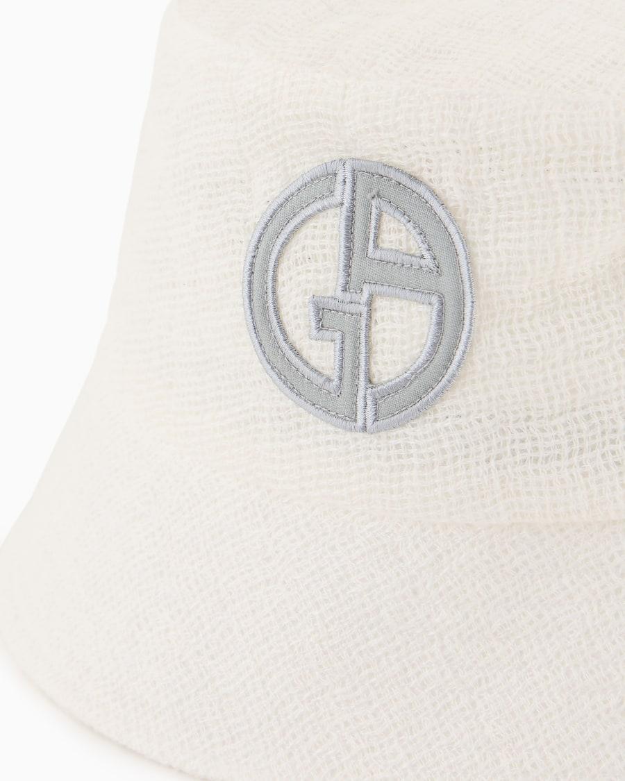 Colorato cappello a cloche realizzato in misto lino intrecciato, impreziosito dal logo GA ricamato a contrasto. Le nuance intense che danno vita all'accessorio richiamano i toni brillanti della proposta resort.